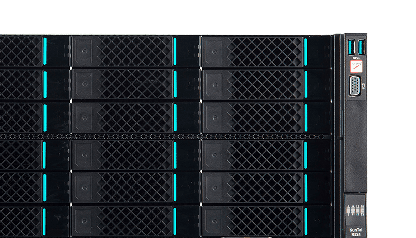 KunTai R524 存储型服务器是英国365上市公司数码基于鲲鹏处理器推出的新一代 ARM数据中心服务器。。主要面向存储业务,,,,具有海量存储、、、高性能、、、、低功耗以及易扩展的特点,,适合为大数据分析、、、软件定义存 储等应用场景的工作负载进行髙效加速。。。
